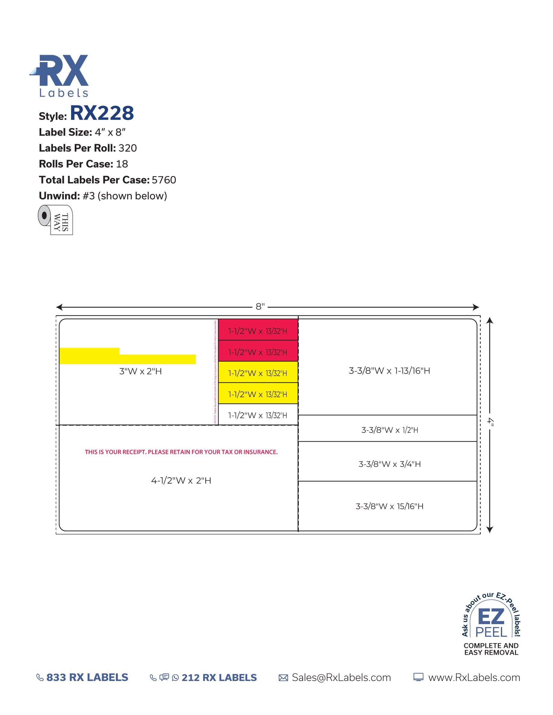 The RX Labels RX-228 prescription label is a high-quality label designed for professional use. It measures 8" x 4", is pre-printed and blank, and is designed to withstand all environmental conditions. This label is suitable for use on prescription medication bottles, vials, and packs. Order your bulk prescription labels now!