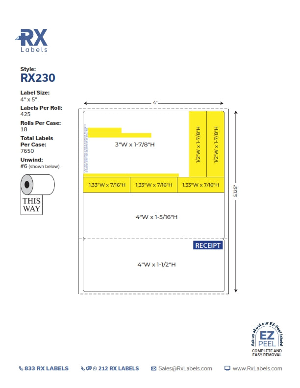 The RX Labels RX-230 prescription label is a top-quality label designed for efficient and accurate labeling of prescription medication bottles, vials, and packs. The RX-230 label comes in pre-printed and blank options, giving pharmacists the flexibility to customize the label's content to meet their specific medication labeling requirements. The pre-printed option includes spaces for patient name, prescription number, and dosage information, while the blank option is customizable for additional necessary information. Its premium-quality material ensures that the label's ink is crisp, clear, and easy to read. The RX Labels RX-230 prescription label is a fantastic investment for pharmacists who value reliable and accurate prescription medication labeling. Its versatile labeling options, compatibility with technology, and high-quality material make it an indispensable tool for any pharmacy environment.