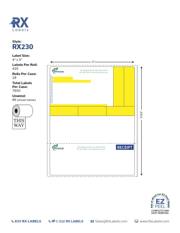 Crafted with meticulous attention to detail and using premium materials, the RX 230 label guarantees exceptional durability, standing strong throughout the prescription's lifecycle. Its specially designed adhesive backing ensures a secure and reliable attachment to prescription medication bottles, keeping the label intact and effortlessly legible at all times.