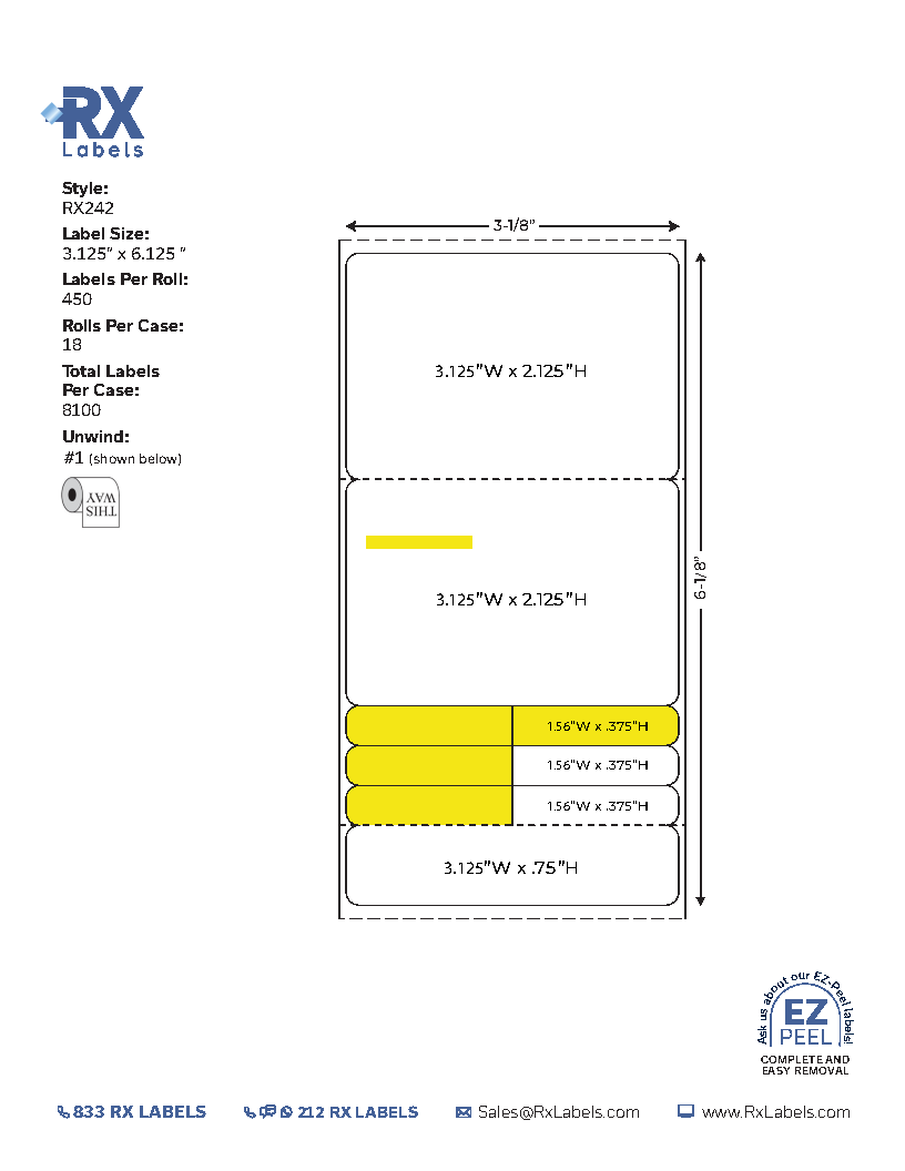 Introducing the RX-242 Standard Prescription Label — a cutting-edge solution designed to meet the unique needs of pharmacists and medical professionals. Measuring 3.25" x 6.375" , this label provides a compact yet spacious platform for all your essential prescription details. Its compatibility with a range of printing systems ensures effortless adoption, streamlining prescription labeling processes for maximum efficiency.