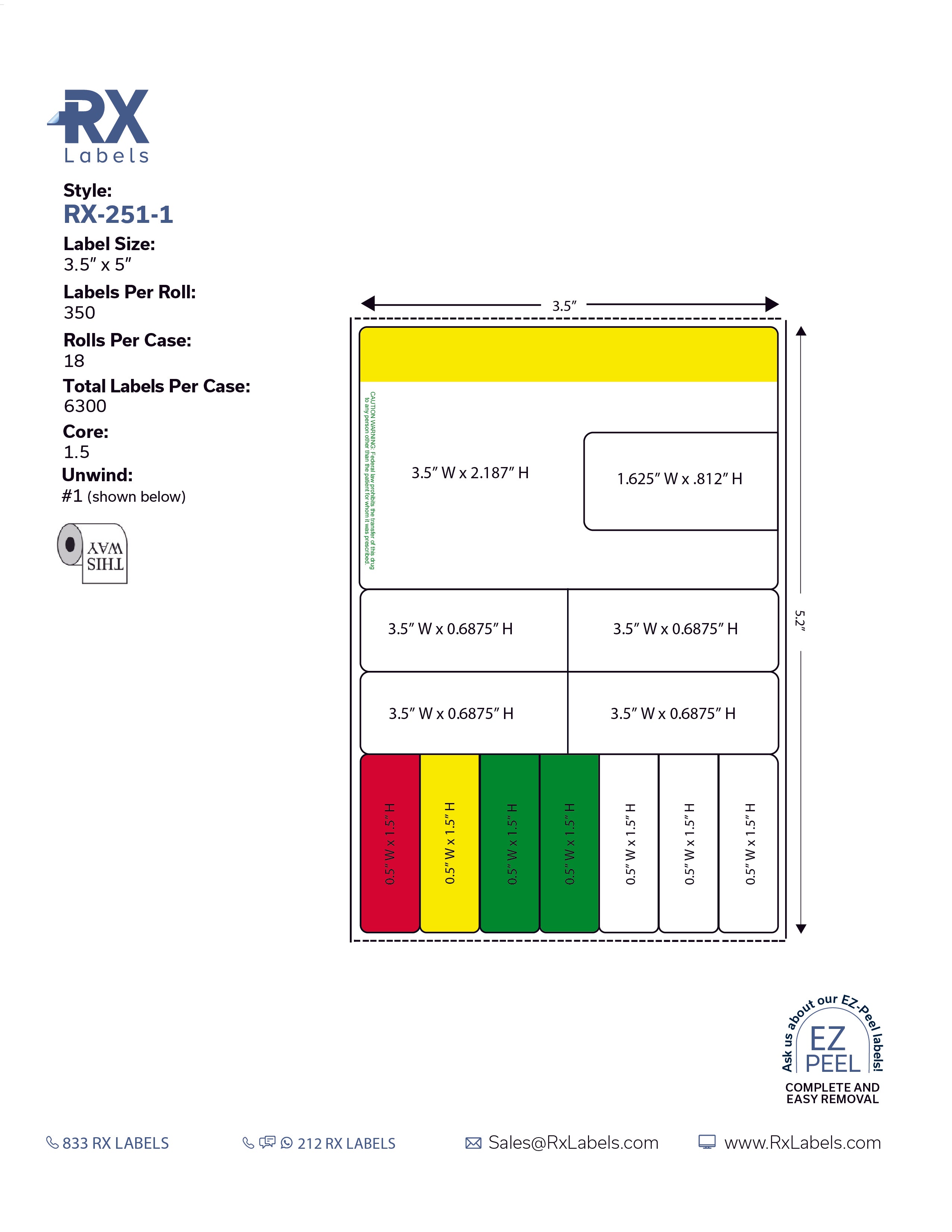 The RX Labels RX-251-1 prescription label is a high-quality label designed for professional use. It measures 3.5" x 5", is pre-printed and blank, and is designed to withstand all environmental conditions. This label is suitable for use on prescription medication bottles, vials, and packs. Order your bulk prescription labels now!